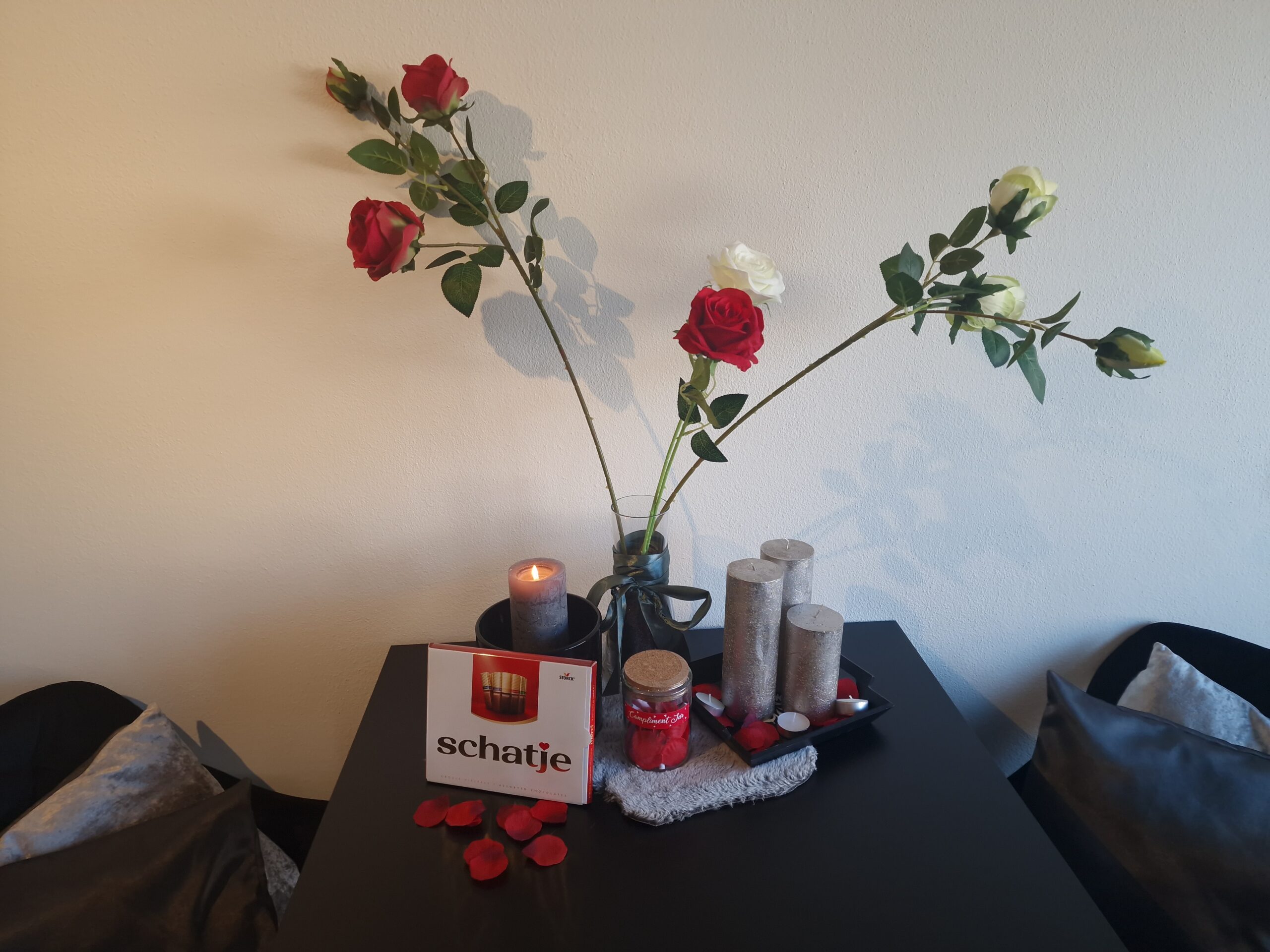 Geniet van een knusse accommodatie met speciale Valentijnsdecoratie, perfect om je partner te verrassen.